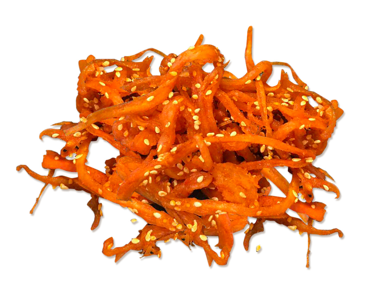 Vysoce proteinový snack z přírodního kalamára, jemně nakrájený, lehce osolený a dochucený chilli s přídavkem sezamu. Lehký, aromatický a mírně pikantní – ideální jako svačinka nebo pochoutka k nápojům.